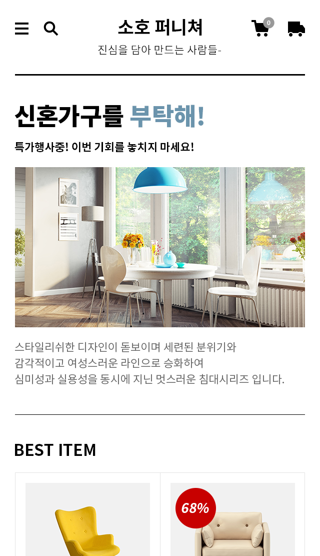 쇼핑몰 제작 경험이 없어도 원하는 템플릿 선택만으로 손쉽게 디자인 할 수 있습니다.