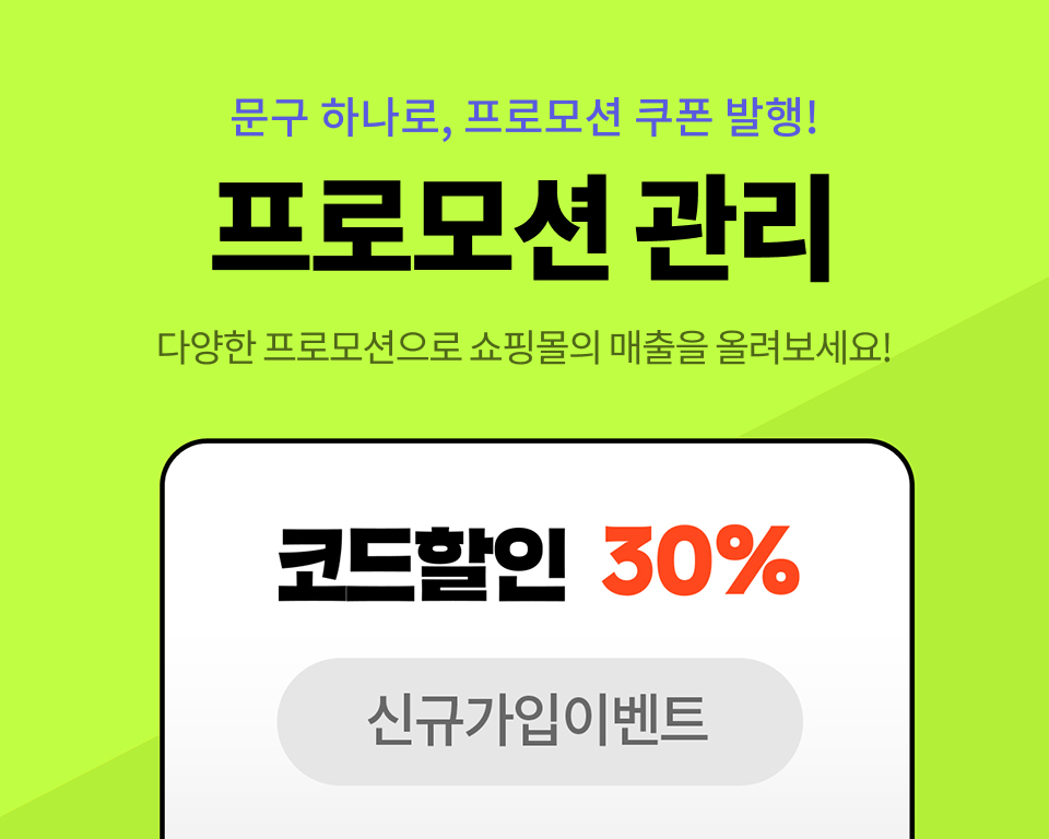 내 쇼핑몰 만의 특별한 프로모션이 가능합니다.