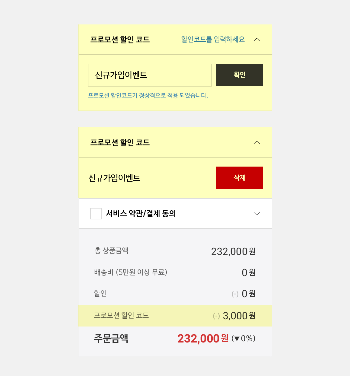 회원만을 위한 프로모션 쿠폰 또는 코드 발행이